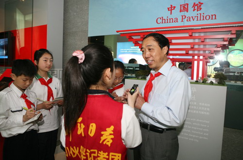 5月19日,上海世博局黨委副書(shū)記、紀(jì)委書(shū)記許偉國(guó)接受了上海市第六次少代會(huì)代表及《少年日?qǐng)?bào)》小記者的采訪。小記者們就上海世博會(huì)學(xué)生優(yōu)惠門(mén)票、小朋友如何參與上海世博會(huì)等問(wèn)題進(jìn)行了提問(wèn)。