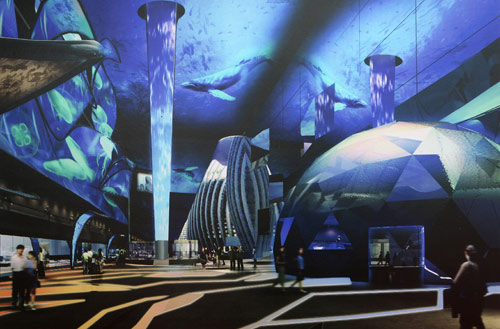 上海世博會主題館——未來館分為“昨日之夢”、“理想與實踐”、“多種可能性”、“夢想正在實現(xiàn)”四個部分。展館從“昨日之夢”開始重溫人類的實踐過程,運用影片、書籍和雕塑等方式展示從古至今人們對未來城市的幻想、設(shè)計與實踐,并向參觀者展現(xiàn)當(dāng)今的實踐成果和未來城市是建立在今日挑戰(zhàn)基礎(chǔ)上的理念。