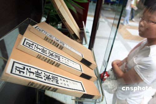 7月14日,在滬舉行的“尋根稽譜——上海圖書館藏家譜精品展”上,一部《孔子世家譜》吸引了眾多參觀者的目光。這部記載孔子后裔達(dá)七十余世的家譜,因其記錄的連續(xù)性和完整性,以及嚴(yán)謹(jǐn)?shù)捏w例、翔實(shí)的資料,號稱“天下第一譜”。 據(jù)介紹,上海圖書館現(xiàn)藏有中國家譜近2萬種20萬冊,共計(jì)365個(gè)姓氏,是國內(nèi)外收藏中國家譜原件最多的公藏機(jī)構(gòu)。這次展出的60件展品,都是從館藏中挑選出來的精品。中新社發(fā) 湯彥俊 攝