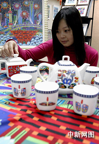 中新網(wǎng)11月24日電(萬(wàn)軍)為迎接世博會(huì)到來(lái),上海金山農(nóng)民畫(huà)院特地開(kāi)發(fā)出系列世博題材創(chuàng)意延伸產(chǎn)品,其中A套以江南傳統(tǒng)繡花鞋為圖案、選用著名的唐山骨瓷為原料,名為“和諧”茶壺(喝與鞋的諧音),B套茶壺蓋則用世博會(huì)中國(guó)館圖案制成,一經(jīng)面世,即受到中外人士的關(guān)注。