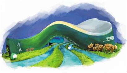 整個(gè)展館的外部造型,全部采用流暢的曲線,沒(méi)有生硬的幾何線條,突出了自然的特色。外墻的色調(diào)用明快的綠、白兩種顏色組成,綠色代表著江河源頭的生命氣息和凈土特色,白色象征著高聳的昆侖雪峰。參觀者可以看到清澈的江河之水在腳下淙淙流淌,皚皚的雪峰和自己咫尺相望。展館有意沒(méi)有過(guò)多采用多媒體手段,而盡量突出自然特色,目的是給參觀者一種真實(shí)而全新的審美體驗(yàn),同時(shí)也在凸顯青海 “環(huán)保立省”、 “生態(tài)立省”的發(fā)展之道。