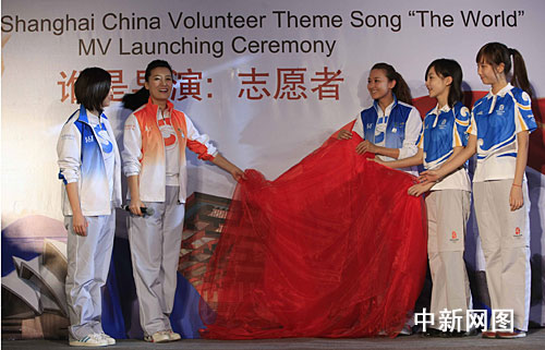 世博會(huì)志愿者主題歌《世界》由王平久作詞、何沐陽作曲,譚晶演唱,以擁抱和微笑詮釋志愿精神。