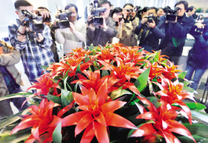 “中國紅”是鮮花港科技興市重大攻關項目的最新成果。這一鳳梨花新品色澤純正花型飽滿,葉片大花期長,環(huán)境適應性強,是較理想的室內用花。(薛慧卿 孫中欽)