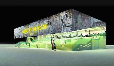 河南館的建筑外形由一個(gè)“中”字變形而來,分上中下三層空間,其中中部構(gòu)成一個(gè)全開放的坡面空間,為展館主體,上層主要是穹頂裝置,下層則設(shè)計(jì)為一個(gè)藏寶室。正面是“國之中、城之源”及“河南”幾個(gè)大字;側(cè)面,盧舍那大佛微笑了千年的龍門石窟,觀之令人震撼。展館主體空間,由數(shù)千個(gè)文物復(fù)制品、人物模型組成了一個(gè)實(shí)體的、起伏綿延的游行隊(duì)伍,仿佛是一場(chǎng)流暢的盛大演出。據(jù)了解,上海世博會(huì)河南館正在加緊裝修布展,各種展品正陸續(xù)運(yùn)往上海,參展文物和大游行人偶4月10日~15日安放到位,4月15日~20日試運(yùn)行,4月20日后將隨中國館試運(yùn)營。昨天,河南世博辦還向記者解讀了河南館的五大亮點(diǎn)。