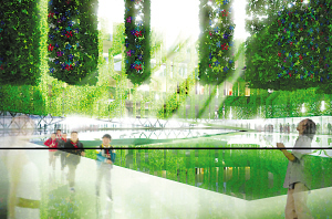“建筑內(nèi)部的綠色立體園林,也使用了可降解、可循環(huán)的材料,以盡可能達(dá)到最大限度的環(huán)保。這些綠色的植物,除了可以讓人們親近自然,還能夠幫助調(diào)節(jié)室內(nèi)溫度,讓參觀者更加舒適。屋頂?shù)奶?yáng)能電池板,則提供了清潔而免費(fèi)的能源!狈娇烧f(shuō)。