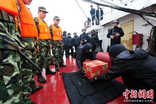 中新網(wǎng)舟山4月27日電(記者 趙曄嬌 通訊員 包能偉)昨天下午2時,浙江省舟山市定海區(qū)公安、海事、港航、海洋與漁業(yè)、邊防等多部門聯(lián)合舉行“清海”世博安保聯(lián)合演練。本次模擬警情為一名在定海農(nóng)村宕口做爆破員的犯罪嫌疑人,私自截留了10公斤炸藥,企圖帶往上海金山幫助一不符合爆破條件的工地進行爆破作業(yè)。