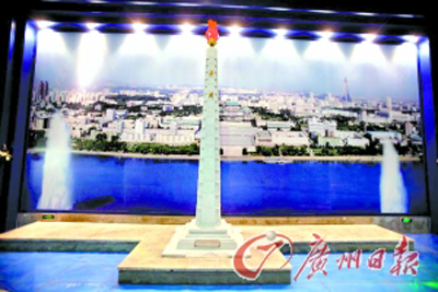 在世博會159年的歷史上,上海世博會是朝鮮第一次參加的世博會。以“人民的樂園”為主題的朝鮮館緊挨著伊朗館,展館以國旗、千里馬銅像等圖案裝飾外墻,以主體思想塔、大同江、朝鮮式?jīng)鐾、假山、小石洞為主要展項,運用高科技手段展示首都平壞既古老又現(xiàn)代的風(fēng)貌和朝鮮秀美的風(fēng)光、獨特的文化以及在教育、科學(xué)、文化、體育等領(lǐng)域取得的巨大成就。朝鮮館工作人員胸前都佩戴著金日成頭像的像章。在朝鮮館內(nèi),還放置著幾臺電視機,正在播放著反映朝鮮人民生活的錄像,不少游客駐足觀看。