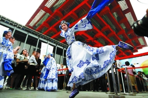 上午10時(shí),隨著“北京歡迎你”歌聲的響起,北京周慶典廣場(chǎng)第一場(chǎng)文藝演出開(kāi)始。白色的天壇是背景,舞臺(tái)上紅衣少女隨著鼓點(diǎn)在舞動(dòng),鼓點(diǎn)聲從廣場(chǎng)中心向四周傳開(kāi),傳向世博軸,傳向中國(guó)館。