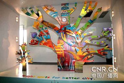 不同的是,在這些充滿童趣的花園城市里,還放置了13個電子顯示屏,里面是俄羅斯小孩用不太熟練的漢語介紹他們國家的最新科技成果,有太陽能做飯裝置,有用于治療創(chuàng)傷的人造皮膚。現(xiàn)代科技讓前人的夢想變成了現(xiàn)實,照此推想,今天孩子們眼中的城市也許未來真會實現(xiàn)。帶著孩子來參觀的王女士收獲了意外的驚喜。