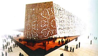 波蘭館外形抽象且不規(guī)則,表面布滿鏤空花紋,仿若民間剪紙,使參觀者獲得有趣的視覺體驗:色彩變幻的光線穿過剪紙圖案在館內(nèi)營造一種明暗錯落的效果。