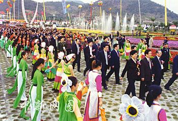 2002年1月8日上午,漳浦馬口花博 園彩旗飄揚,樂聲陣陣,花香四溢,人潮涌動。第四屆海峽兩岸(福建漳州)花博會在這里隆重開幕。全國政協(xié)副主席張克輝宣布花博會開幕。全國政協(xié)人口資源環(huán)境委員會副主任、國家林業(yè)局黨組成員、中國林業(yè)科學(xué)研究院院長、中國花卉協(xié)會會長江澤慧,福建省人民政府副省長曹德淦,大陸臺商園藝產(chǎn)業(yè)聯(lián)誼會會長謝聰敏等在開幕式上致辭。省政府副秘書長、花博會組委會副主任黃琪玉主持開幕式。