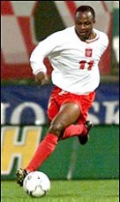 這位1978出生的希臘帕納辛奈科斯隊(duì)的前鋒是一個(gè)尼日利亞人,不過在波蘭總統(tǒng)的親自過問下,這位黑人前鋒得以迅速加入波蘭國籍,而他在代表波蘭國家隊(duì)的第一場比賽中就不負(fù)眾望攻入一球,使本隊(duì)逼平了東歐勁旅羅馬尼亞。他在本次預(yù)選賽中攻入了8球,對(duì)于波蘭第一個(gè)從強(qiáng)隊(duì)如林的歐洲賽區(qū)第一個(gè)出線,起了決定性的作用,也得到了波蘭人民的一致認(rèn)可,已經(jīng)被公認(rèn)為是波蘭的英雄人物。