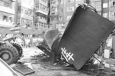 23日14時(shí)許,記者隨同80余名執(zhí)法人員來(lái)到現(xiàn)場(chǎng),經(jīng)執(zhí)法人員連日調(diào)查發(fā)現(xiàn),遼陽(yáng)街57號(hào)院內(nèi)共有私建車庫(kù)11處,房主不能提供任何審批手續(xù),并拒不自行拆除。當(dāng)執(zhí)法人員調(diào)動(dòng)鏟車準(zhǔn)備進(jìn)行拆除時(shí),一家車庫(kù)的房主將吉普車停靠在車庫(kù)前,不讓鏟車靠近,并站在車庫(kù)門(mén)前對(duì)執(zhí)法人員進(jìn)行辱罵。其中一名男子更是拿出把30多厘米長(zhǎng)的大長(zhǎng)砍刀,揚(yáng)言靠近傷到不負(fù)責(zé),并在執(zhí)法人員面前揮舞砍刀,一名執(zhí)法人員受傷。他一邊揮舞砍刀一邊對(duì)執(zhí)法人員進(jìn)行辱罵,站在旁邊的3名男女不時(shí)地推搡執(zhí)法人員,阻止拆除工作。面對(duì)恐嚇和威脅,執(zhí)法人員采取措施將私建房主隔離現(xiàn)場(chǎng),并調(diào)來(lái)拖車將擋在車庫(kù)前的吉普車拖離現(xiàn)場(chǎng)后立即開(kāi)展拆除。隨著鏟車的轟鳴聲,11處侵占居民生活空間的私建車庫(kù)被強(qiáng)拆。