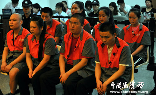 當(dāng)8名被告人被法警帶入法庭時,坐在旁聽席上的家屬紛紛哭起來,經(jīng)過法官提醒后,家屬們才控制住自己的情緒。