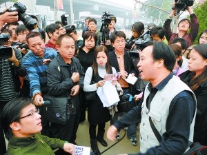 在昨天審理肖傳國一案的同時(shí),法院大門外也上演著一場“庭審”:接受肖氏術(shù)的患者和家屬以及肖傳國的支持者都自稱自發(fā)來到法院,形成兩個(gè)鮮明陣營,將原本在網(wǎng)上互相發(fā)帖拍磚的論戰(zhàn)搬到了這里。