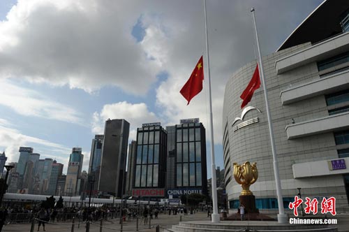 根據(jù)國務院通知,當日所有特區(qū)政府及中央駐港機構(gòu)的國旗下半旗致哀。而港府也發(fā)布,默哀期間,除緊急及出入境服務外,其它政府服務暫停;當值的政府人員在辦公地點參與默哀。