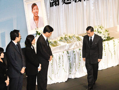 康泰旅行社昨晚在葵青劇院為謝廷駿舉辦“我們永遠(yuǎn)懷念您—謝廷駿追思會”。追思會分為兩部分,先接待800名謝家家屬、好友、旅行社員工;之后開放予1000名冒雨出席的公眾人士,香港署理行政長官黃仁龍、勞工及福利局局長張建宗等多名官員出席向謝廷駿致意。