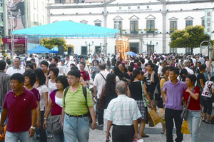 圖:澳門中區(qū)街道人流不息。(圖片來源:澳門日報)