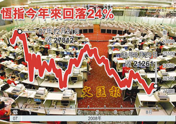 東驥投資董事總經(jīng)理龐寶林亦指,雖然經(jīng)約9個(gè)月的大幅下跌后,中國(guó)股市的估值已變得吸引,但宏觀環(huán)境仍很不明朗,內(nèi)地企業(yè)盈利未來(lái)或轉(zhuǎn)差,因此港股在9月反彈過后,未來(lái)3至6個(gè)月料會(huì)反復(fù),并向下尋底。他表示,內(nèi)地樓價(jià)持續(xù)下跌,是未來(lái)一大風(fēng)險(xiǎn)因素,今年內(nèi)地部分城市樓價(jià)已下跌達(dá)20%至30%。