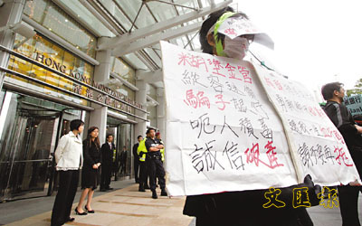 圖為雷曼苦主在香港金管局前示威。圖片來源:文匯報