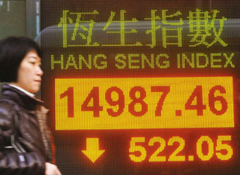 美股回升,令港股7日高開(kāi),但恒指瞬即掉頭向下,跌足全日,主要因?yàn)槊楞y減持建行的消息,使一眾中資銀行股被拋售,加上內(nèi)地3G正式發(fā)牌,投資者遂趁高位沽貨離場(chǎng),令港股失守15000點(diǎn)關(guān)口,全日跌522點(diǎn),收?qǐng)?bào)14987.4點(diǎn),跌幅3.4%,成交高達(dá)900億元,創(chuàng)逾3個(gè)月以來(lái)新高。即月期指7日?qǐng)?bào)15064點(diǎn),跌470點(diǎn),仍高水77點(diǎn)。
