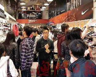 現(xiàn)場觀察,平均每3分鐘賣出一對球鞋,但鞋店負責人表示,雖人流暢旺,上周六生意額更達5萬左右,生意仍比去年少20%至30%!叭ツ晔斟X收到手軟,今年拿鞋拿到手軟!”顧客喜歡試鞋,卻未必購買。以往更常見家庭客,一次購買3、4雙鞋,今年顧客“一雙起、兩雙止”。