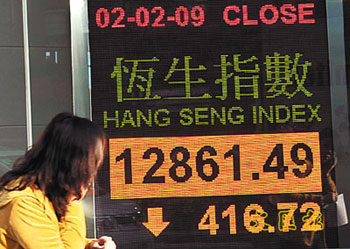 中新網(wǎng)2月3日電 據(jù)香港《文匯報》報道,外圍下跌令港股結(jié)束一連兩天的升市,恒指2日低開84點后再向下,最多跌過545點,收報12861點,跌416點,成交疲弱,只有357億元。
