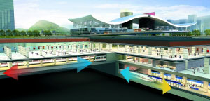 未來建設(shè)的廣深港客運(yùn)專線的時(shí)速將達(dá)到300公里。福田車站建成后,從深圳中心區(qū)坐火車去香港九龍只需27分鐘,到廣州新客站只需要33分鐘,而在感受廣深港同城化的同時(shí),乘客也將體驗(yàn)到全國最大地下火車站的魅力。這是一座立體式的換乘樞紐,共分地下三層,最下面一層就是廣深港客運(yùn)專線“D”字頭動(dòng)車組所運(yùn)行的軌道,而地下二層則與城市軌道交通接駁,其中福田火車站規(guī)劃接駁的設(shè)施包括軌道交通1號線、2號線、3號線、4號線、穗莞深城際線、公交、出租場站等,地下一層是供乘客進(jìn)行換乘、購票、檢票等的樞紐,形成一個(gè)大型地下鐵路客運(yùn)綜合站。