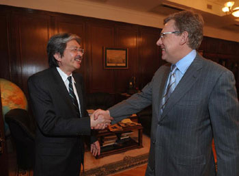 中新網(wǎng)6月3日電 據(jù)香港特區(qū)政府網(wǎng)站消息,香港財政司司長曾俊華3日(莫斯科時間6月2日)與俄羅斯副總理Alexei Kudrin會面。