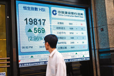 恒指23日高開184點,下午升幅更強,升至接近20000點水平,收報19817.6點,是去年10個月以來的高位,全日升569點,升幅近3%,成交744億。