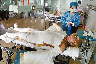 爆炸現(xiàn)場是晨暉家園12樓,傷者是香港人梁希偉,正在市二醫(yī)院搶救,精神尚算清醒,但隨時會爆發(fā)大規(guī)模感染,因此仍未脫離危險期。