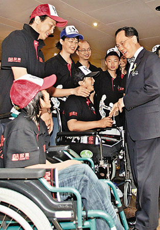 中新網(wǎng)5月13日電 據(jù)香港《文匯報》報道,在地動山搖后的一片頹垣敗瓦中,他們縱使傷痕累累,依舊堅強地“站起來”,活出生命的精彩。在參觀“蜀港同心 大愛無疆──汶川大地震一周年紀念圖片展”后,香港特首曾蔭權伉儷、中聯(lián)辦主任高祀仁與在地震中因肢體損傷而截肢的多名傷員逐一握手與交談,簡單的“打氣”鼓勵。
