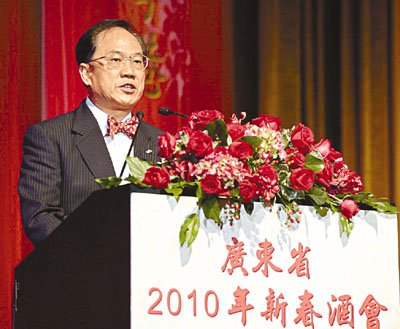 曾蔭權(quán)期望,在新的一年,粵港兩地要繼續(xù)凝聚社會共識,透過優(yōu)勢互補,加快香港在經(jīng)濟上與珠三角的配合。雙方的共同目標(biāo)是結(jié)合廣東省“先行先試”和香港“一國兩制”的優(yōu)勢,配合國家“優(yōu)化第二產(chǎn)業(yè),加快第三產(chǎn)業(yè)發(fā)展”的政策,為國家和香港經(jīng)濟的長遠發(fā)展作新貢獻。他也祝愿,廣東于今年11月舉辦的第16屆亞運會圓滿成功。