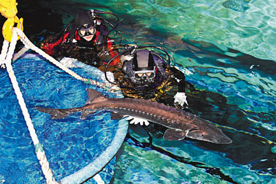 中新網(wǎng)4月24日電 據(jù)香港《文匯報》報道,內(nèi)地贈送香港的10只國寶級中華鱘,經(jīng)過16小時運送后,23日安全抵達香港海洋公園,該園指它們身體狀況及適應情況十分良好。
