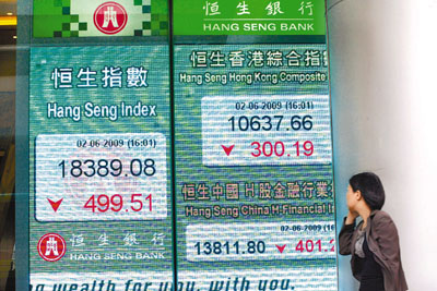 藍(lán)籌股2日普遍向下,當(dāng)中以匯控帶頭下跌,全日挫3.9%,跌回68.05元水平,拖累恒指跌147點(diǎn),中移動(dòng)沽壓也大,挫3.9%。金融股及地產(chǎn)股回吐顯著,國指跌300點(diǎn)至10637.6點(diǎn)。