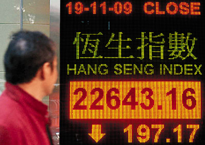 中新網(wǎng)11月20日電 據(jù)香港《文匯報》報道,受外圍股市偏軟影響,恒指19日高開56點后即向下,午后跌幅進一步擴大,最低曾見22587.18點,全日收報22643.16點,跌197.17點,全日總成交697.69億元,國企指數(shù)跌217.03點至13470.98點。