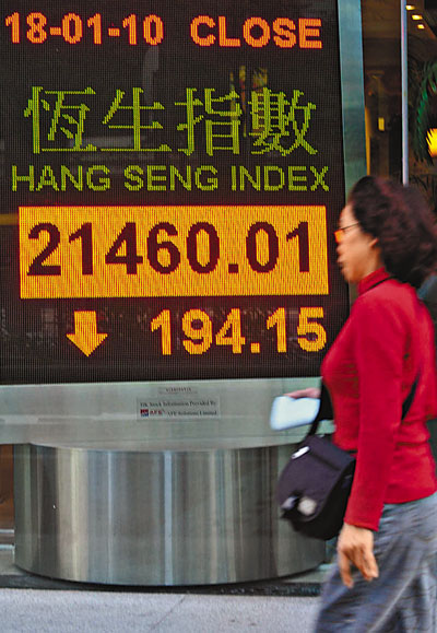 中新網(wǎng)1月19日電 據(jù)香港《文匯報(bào)》報(bào)道,承接美股弱勢,港股18日低開227點(diǎn)后,最多跌過334點(diǎn),其后在中資金融股反彈下,下午跌幅進(jìn)一度收窄至不足10點(diǎn),但其后跌幅再擴(kuò)大,最終收報(bào)21460點(diǎn),跌194點(diǎn),總成交695億元,是連續(xù)5天跌市,全日高低波幅325點(diǎn)。