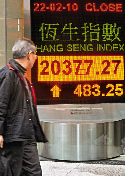 中新網(wǎng)2月23日電 據(jù)香港《文匯報》報道,內地股市長假期后重開,A股走勢偏軟,滬深兩市均未能收紅盤。由于香港上周五已經(jīng)大跌,加上下午賣地成績理想,令恒指22日擺脫A股的羈絆,大市在匯控、中移動及一眾地產(chǎn)股上升帶動下,重上20000點水平。