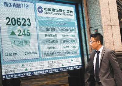 中新網(wǎng)2月24日電 據(jù)香港《文匯報(bào)》報(bào)道,財(cái)政預(yù)算公布前,港股反復(fù)造好,23日早段雖跟隨外圍低開,最多跌260點(diǎn),但賣地成績(jī)理想繼續(xù)刺激香港地產(chǎn)股上升,帶動(dòng)港股由跌轉(zhuǎn)升,加上傳聞迪拜世界再獲注資,消息利好匯控,恒指最多曾倒升330多點(diǎn),收市報(bào)20623點(diǎn),升245.7點(diǎn),升幅1.2%,是2月3日以來近三周的最高收巿。