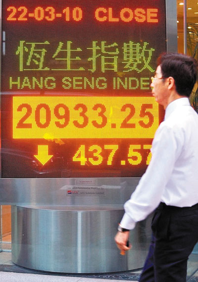 中新網(wǎng)3月23日電 據(jù)香港《文匯報(bào)》報(bào)道,希臘債務(wù)危機(jī)的負(fù)面消息仍籠罩全球股市,加上印度突然加息0.25厘,投資者憂慮其它新興市場特別是中國可能也會跟隨加息,令亞太區(qū)股市報(bào)跌,港股更是區(qū)內(nèi)表現(xiàn)最差的股市。