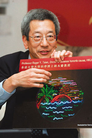 繼香港大學8日向錢永健頒授榮譽博士榮銜外,香港中文大學10日也會向他頒發(fā)榮譽理學博士,并由特首曾蔭權(quán)親自頒授。錢永健在香港的行程緊湊。他9日首先出席公開講座,以“點綠成金”為題,在香港大學發(fā)表演說,當中展示了他的實驗室的最新研究進展。