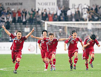 10日是仗香港男足于44分鐘由后衛(wèi)陳偉豪接應(yīng)角球頂成1﹕0,傾力反撲的朝鮮一度讓香港男足陣腳大亂,結(jié)果在完場前5分鐘由樸光龍追成1﹕1,兩軍在加時賽沒有改寫紀(jì)錄,須以互射12碼定勝負(fù)。