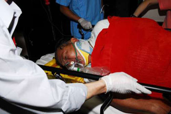 鐘×勝被高爾夫球車壓著,奄奄一息,其余各人除司機(jī)外也受傷,眾人驚魂剛定后實時進(jìn)行搶救,但4人未能移動車身,只好轉(zhuǎn)向球場控制中心求助,職員接報趕往協(xié)助救援。鐘×勝面色轉(zhuǎn)白氣弱游絲,稱胸部好痛,大家擔(dān)心他可能是內(nèi)傷出血。