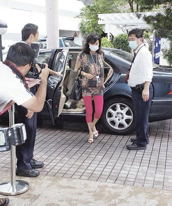 三太陳婉珍與“二房”女兒超鳳及超蕸13日兩度進(jìn)出醫(yī)院探病,面容憔悴的三太在清晨8點(diǎn)半戴著口罩到達(dá),直至中午12時(shí)許離開。其間,她被問到賭王昏迷和身體失去活動(dòng)能力的報(bào)道?三太說:“不是真的!”