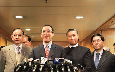 唐英年、政制及內(nèi)地事務(wù)局局長林瑞麟、民政事務(wù)局局長曾德成等,19日出席18區(qū)區(qū)議會正副主席例會,聽取他們對剛發(fā)表的咨詢文件意見,歷時約為1小時。據(jù)了解,除了2名區(qū)議會主席因事未能出席,其它區(qū)議會正副主席都有出席會議。