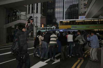 車輛在軍器廠街駛進(jìn)警察總部的路程,原本只需短短一分鐘,因在場(chǎng)守候的記者剛見客貨車駛進(jìn),即蜂擁而上包圍客貨車拍照,結(jié)果車輛花了多達(dá)15分鐘,才能進(jìn)入大廈內(nèi),場(chǎng)面一度混亂,期間警方出動(dòng)十多名警員在馬路上維持秩序。陳的私人保鏢3日曾尾隨警方車輛駛離寓所,但4日總部現(xiàn)場(chǎng)所見,他們似已再無隨行。