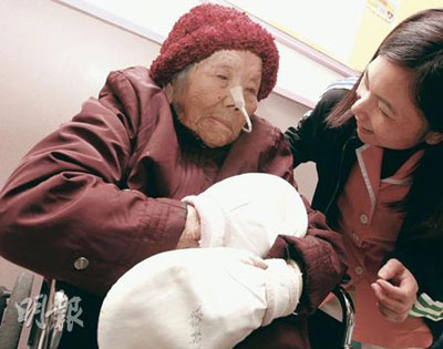 張婆婆人稱“桂妹”,是客家人,住在大埔。記者19日到老人院探望桂妹時(shí),由于沒有其親屬在場,院方只允許記者查看桂妹入院時(shí)填寫的身份證出生日期。按入院紀(jì)錄,她身份證上印上的出生日期是1893年1月4日,即生于清朝光緒19年,由于舊派中國人只記農(nóng)歷生日,1月4日實(shí)指農(nóng)歷正月初四。