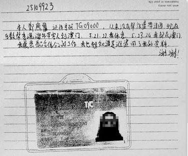 據(jù)報(bào)道,懷疑被人盜用導(dǎo)游證的鄭應(yīng)麗4日接受電視臺(tái)訪問(wèn)時(shí)表示,看過(guò)珠寶店當(dāng)天的錄影片段,但未能認(rèn)出誰(shuí)是“黑工”導(dǎo)游;她稱(chēng),這次事件發(fā)生前,導(dǎo)游證已被盜用,冒牌導(dǎo)游更曾被人投訴,“北京那個(gè)被人投訴的團(tuán)在(5月)9日、10日來(lái)港!编嵳f(shuō),相信導(dǎo)游證至少被盜用2次,“你帶了團(tuán),要拿回傭,永盛必須記錄,這些要問(wèn)他們,才知道(她)帶了多少團(tuán)?用了我的證件多少次?”她希望警方盡快查出真相。