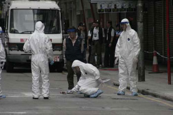 警方初步鎖定福泰大廈及百利寶商業(yè)中心兩幢商廈,作為案情重組的地點(diǎn)。行動(dòng)于20日凌晨5時(shí)展開,近百人到場(chǎng),包括西九龍總區(qū)重案組探員、特區(qū)政府化驗(yàn)師,一輛有升降臺(tái)的消防車也奉召到場(chǎng)協(xié)助。
