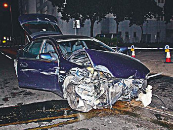 私家車(chē)突圍逃出后,至安全街時(shí)警車(chē)追至,私家車(chē)倒車(chē)連撞警車(chē)三次,在安全街加速疾馳,但失控撞毀路邊三個(gè)石欄繼而反彈路中,車(chē)頭盡毀無(wú)法開(kāi)動(dòng)。